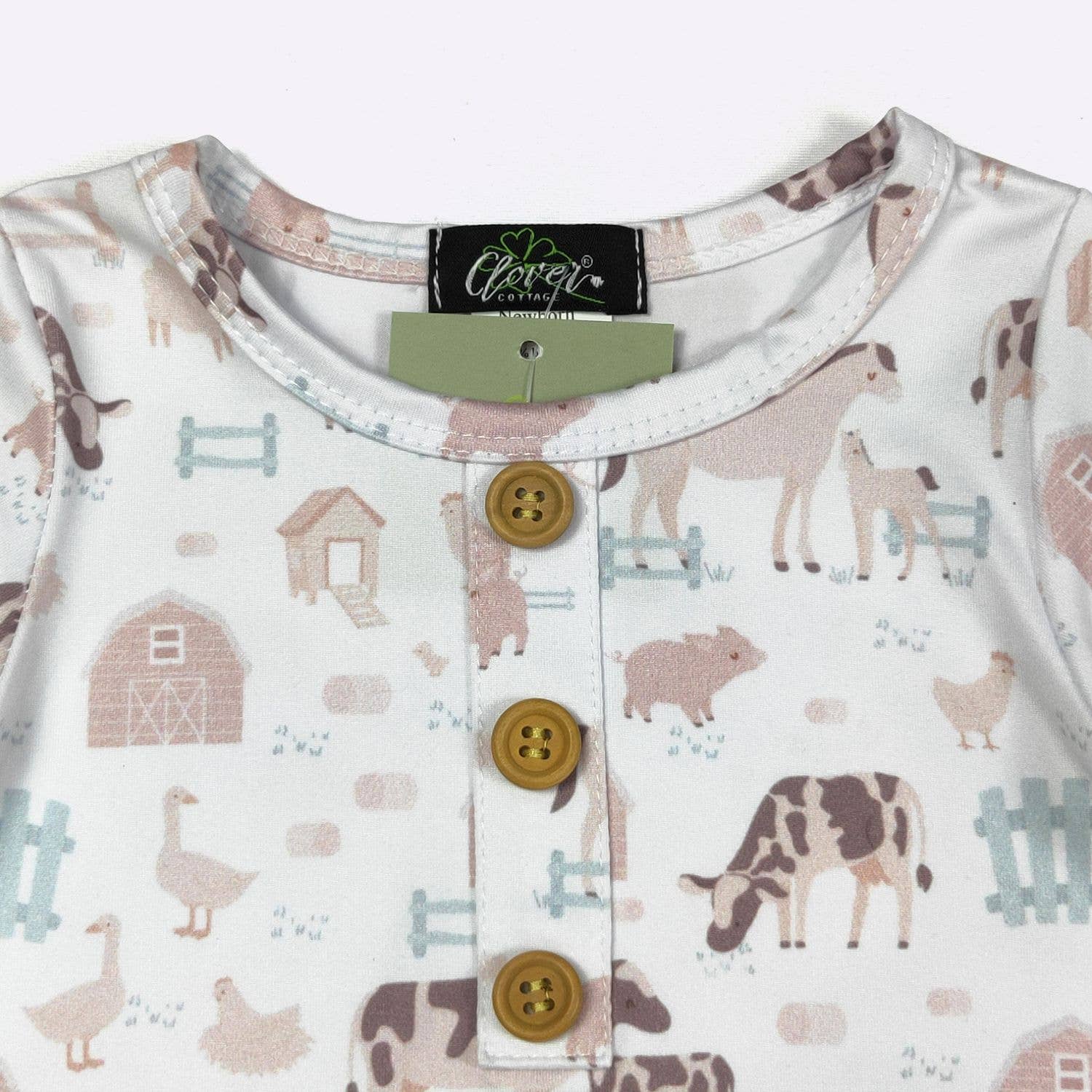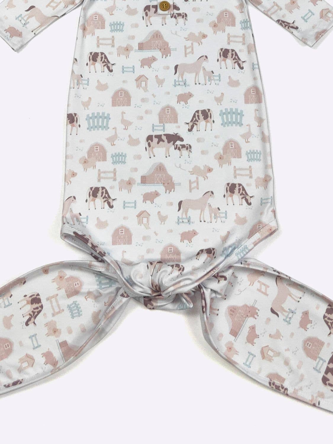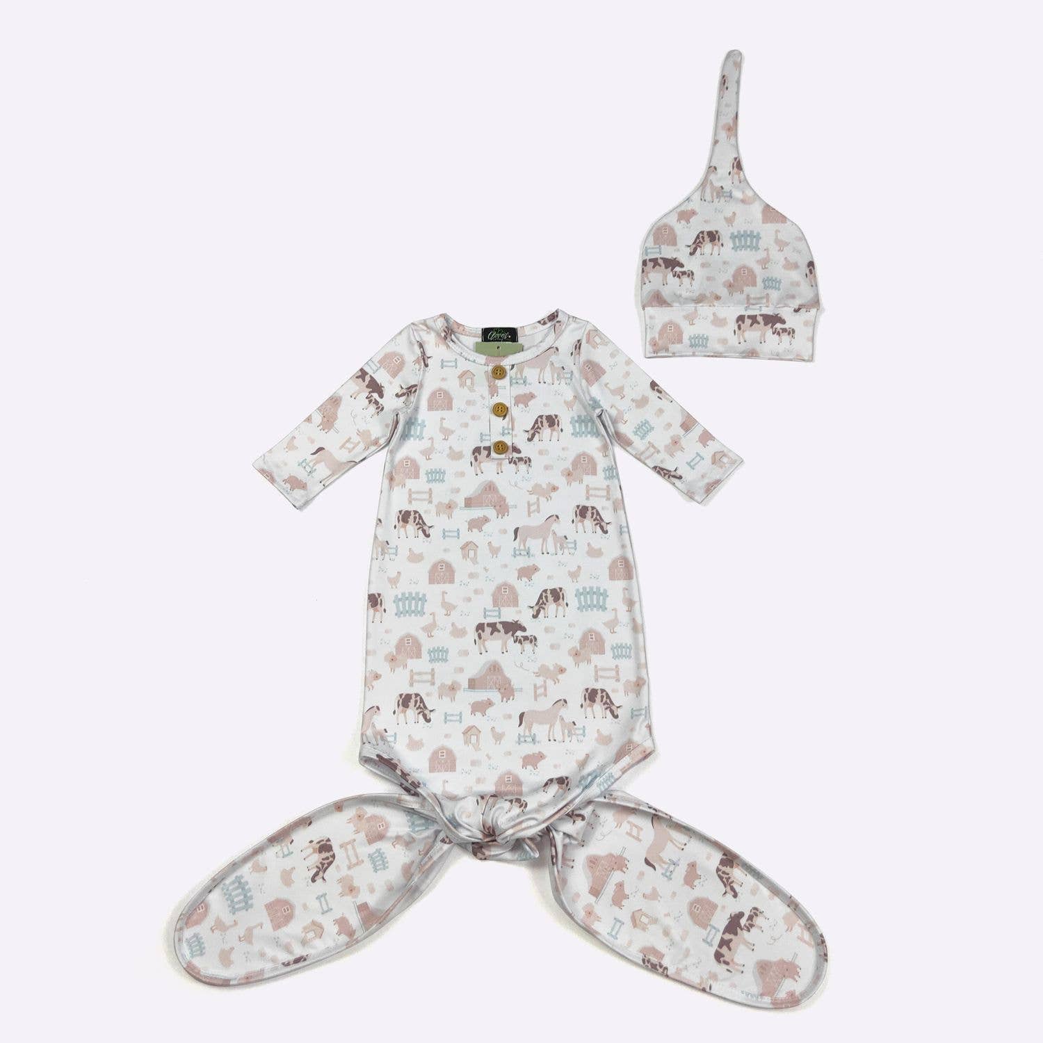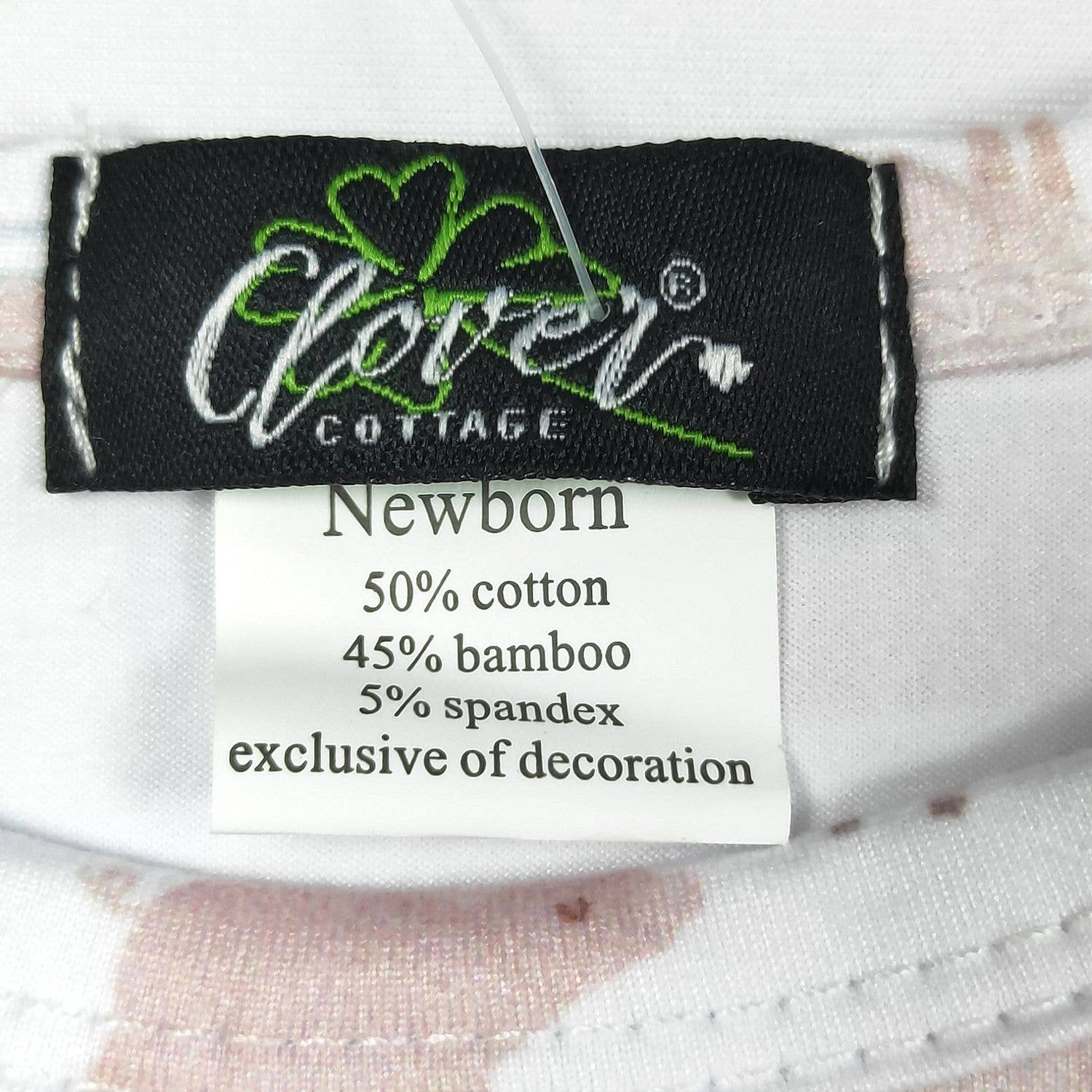 Enjoy sleep or play time when wearing this adorable baby gown and matching hat. Fits Newborn to 3 months! Measurements: 17" length 8" wide chest area across Comes with matching hat for each gown. Bamboo, Spandex, & Cotton Blend....very soft & washes well
