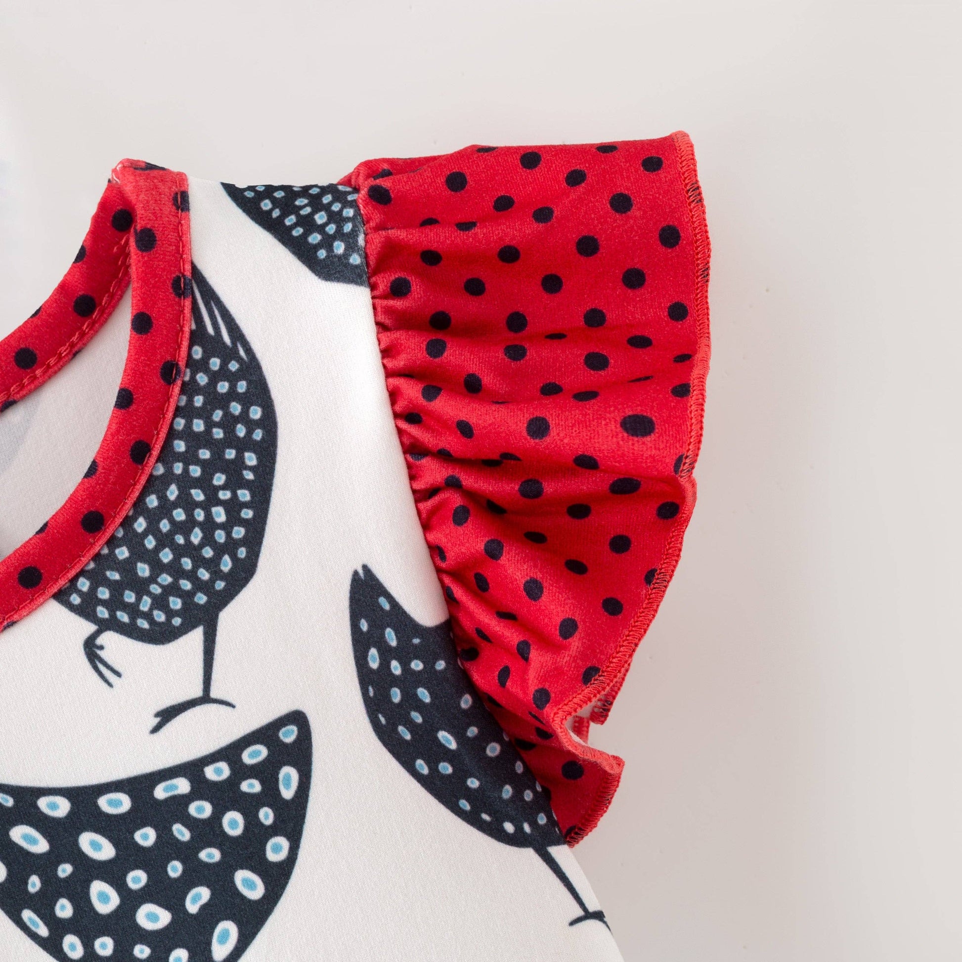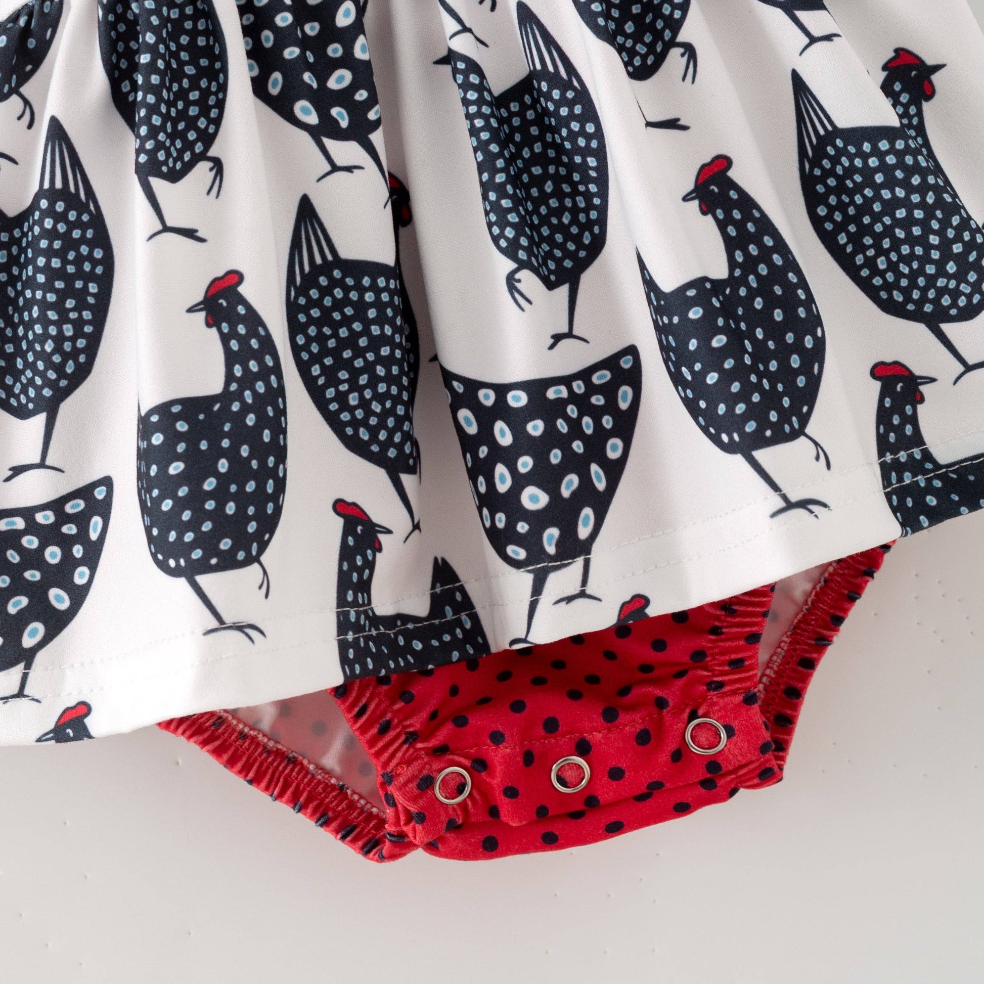 The Count your Chickens Romper is perfect for a little sister matching outfit. Snaps in the bloomers for easy diaper changes.