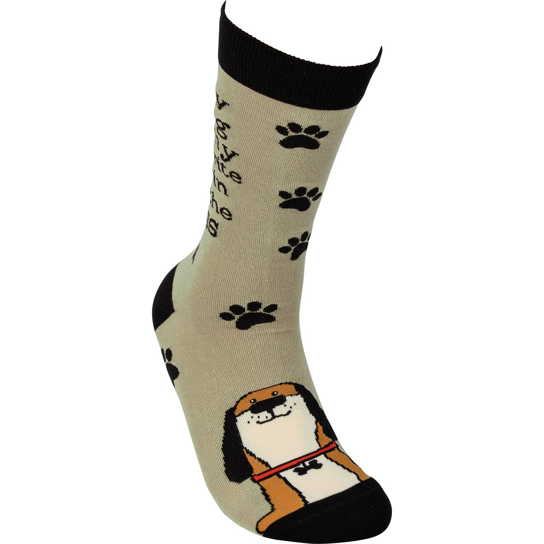 These colorful socks feature woven designs with coordinating "My Dog Is My Favorite Pain In The Ass" sentiment. Cotton, nylon, spandex. One size fits most.